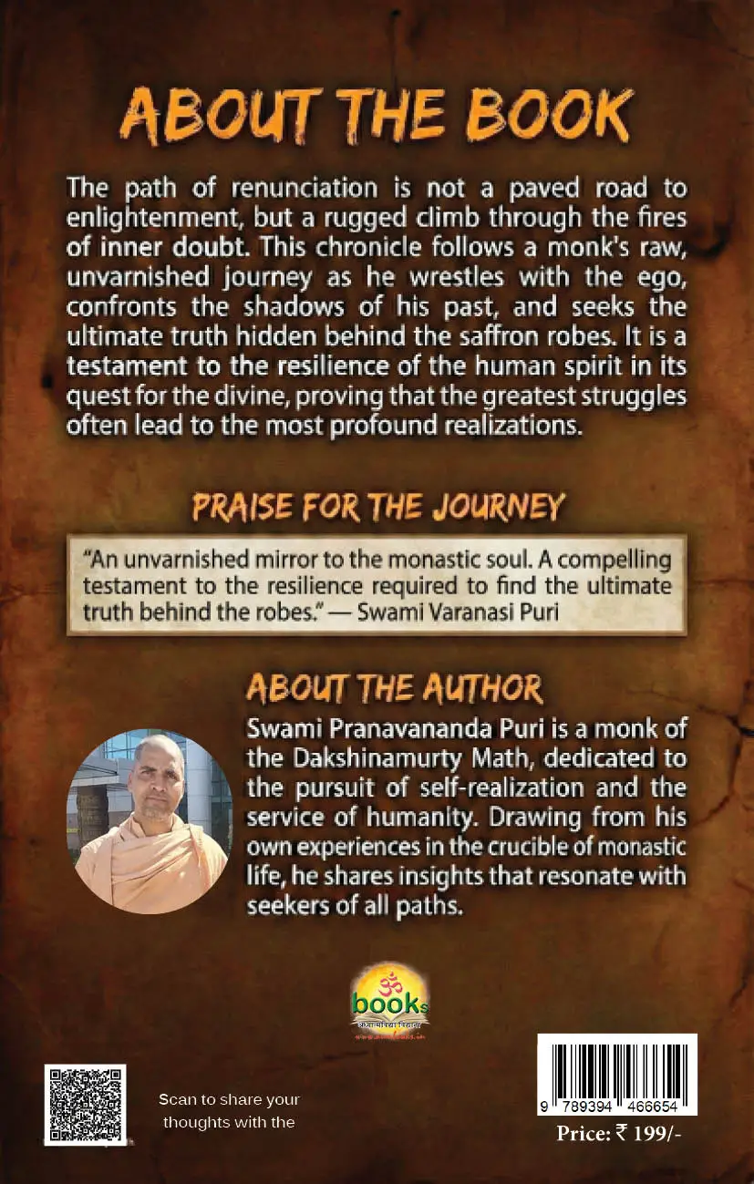 ଏହା କୌଣସି ଜୀବନୀ ନୁହେଁ । ଏହା ଏକ ସାମୂହିକ ସତ୍ୟ —ଏକ ଦର୍ପଣ ଯାହା ସନ୍ନ୍ୟାସ ପଥରେ ଚାଲିବାକୁ ସାହସ କରିଥିବା ପ୍ରତ୍ୟେକ ନିଷ୍ଠାବାନ ସାଧକର ପରୀକ୍ଷାକୁ ପ୍ରତିଫଳିତ କରେ ।